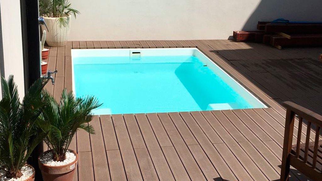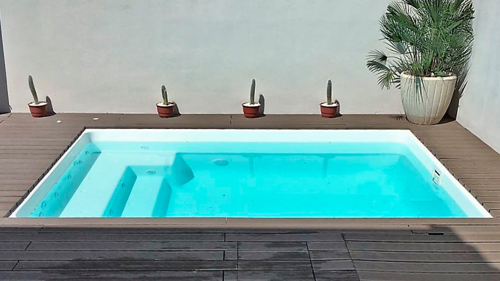 La piscina pequeña MINI 300 PLUS entra en la categoría de las mini piscinas modernas que permiten al usuario su instalación en áticos, terrazas, patios y jardines reducidos.