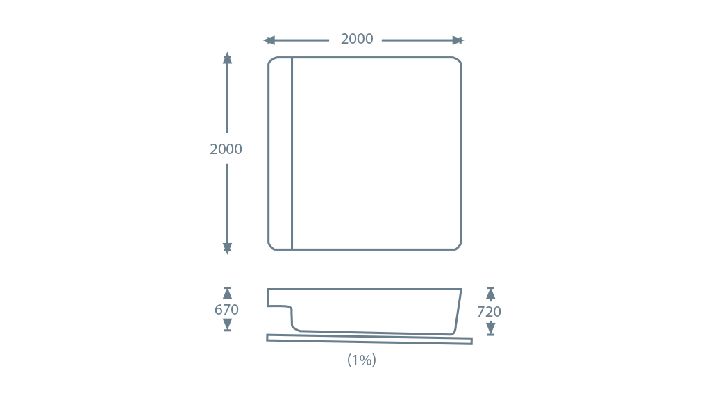 Las medidas de la piscina son 2m de largo, 2m de ancho y 0,70m de profundidad, 4m2 de lámina de agua y aproximadamente 2.000L de capacidad. Estas mini piscinas, pretenden dar momentos de relajación y descanso sin grandes obras y sin suponer un gasto económico enorme para el consumidor.