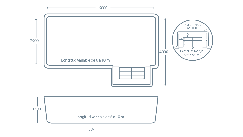 MEDIDAS PISCINA MODERNA COMBI L 600