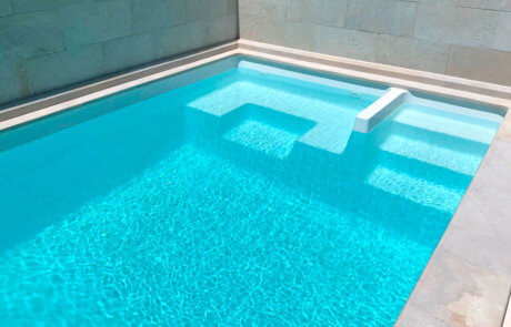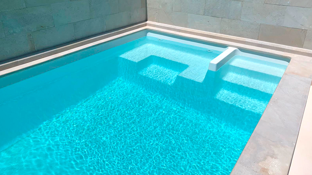 Es una piscina moderna pequeña con un diseño actual pero atemporal, este modelo asegura un estilo elegante del que el usuario no se cansará nunca de admirar y del que podrá disfrutar durante toda su vida. Su escalera separada de la zona de relax, la hacen perfecta para el descanso y la tranquilidad. Un remanso de paz donde poder disfrutar del placer de un baño reparador y refrescante.
